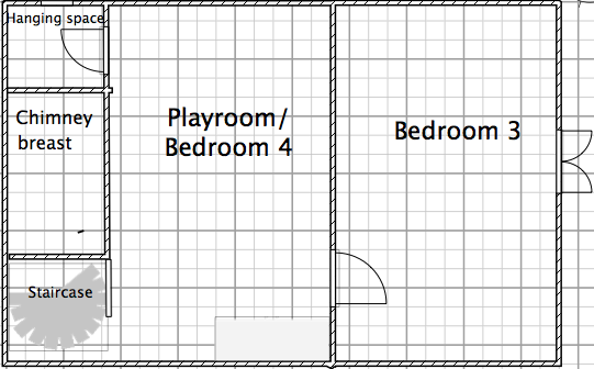 Bedroom 3. Twin bedroom with original oak flooring, vaulted ceiling. (accessed through the playroom).